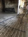 The ground floor of schoolhouse with walls stripped and new cement floor